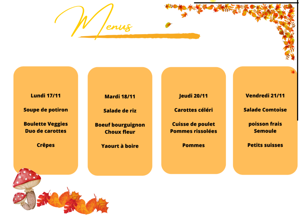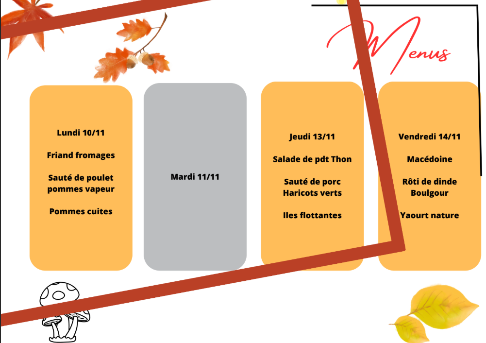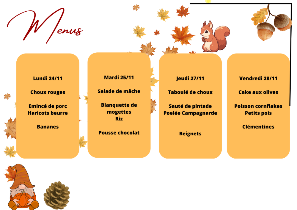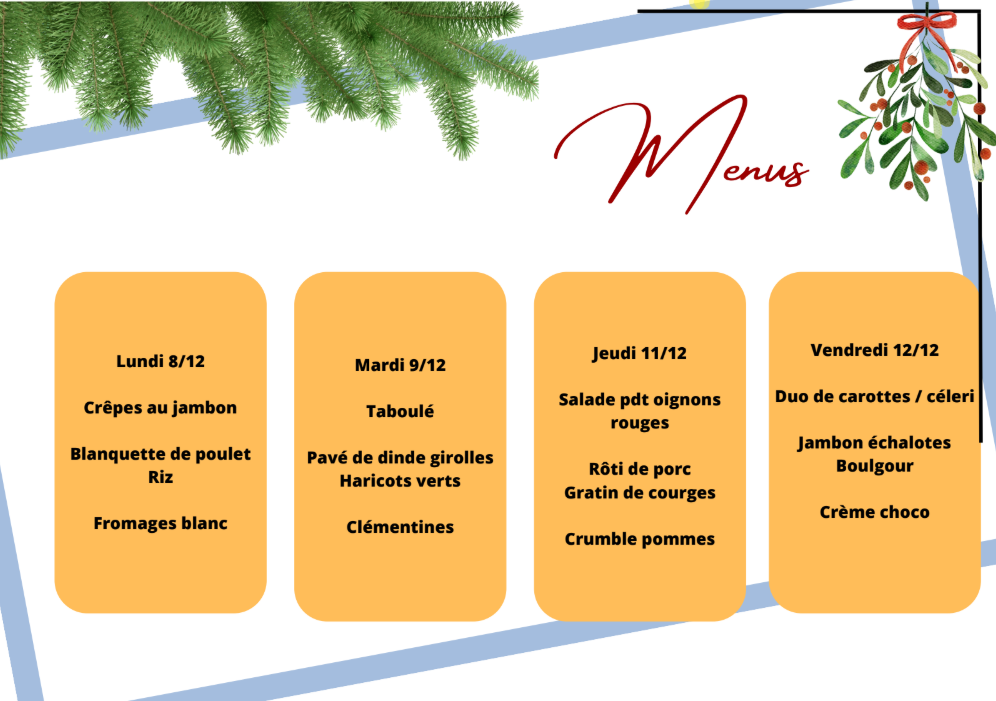 Voici les menus de cette deuxième période, sous réserve de la disponibilité des produits.