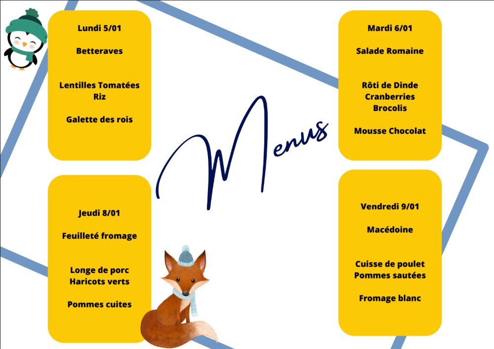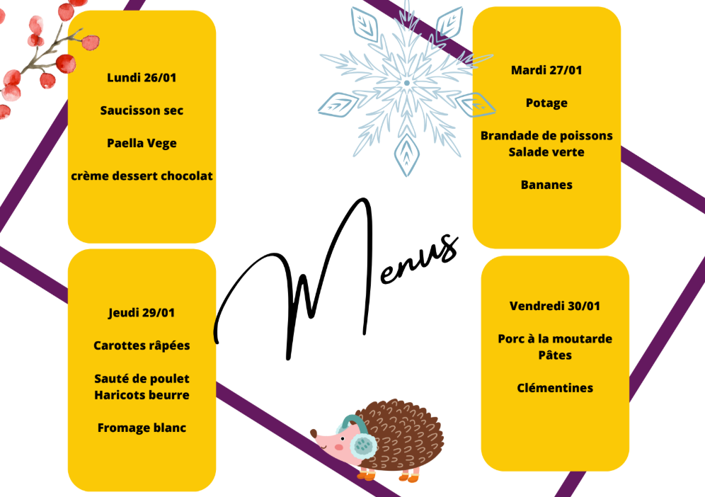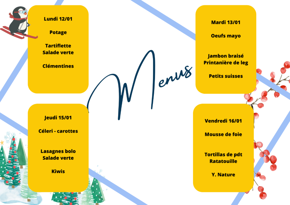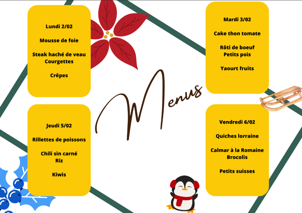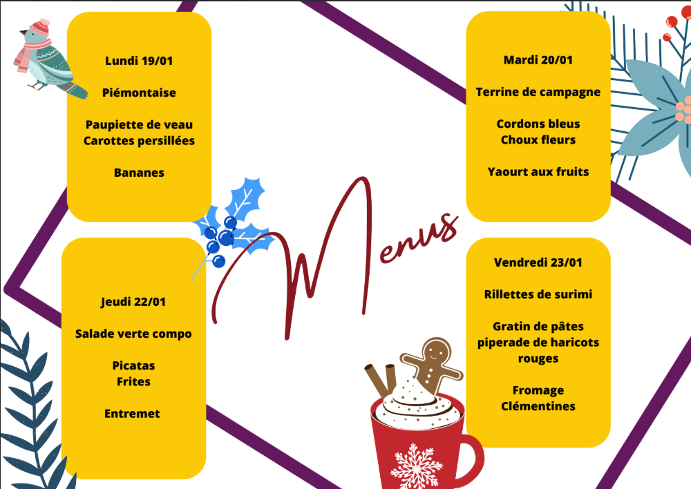 Voici les menus de cette troisième période, sous réserve de la disponibilité des produits.